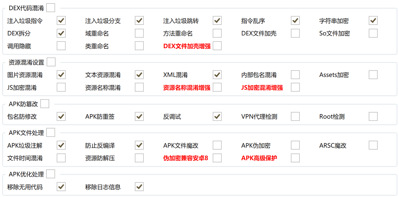 勾选后,会对APK中的so库进行加密,对C++编写的库起到保护作用