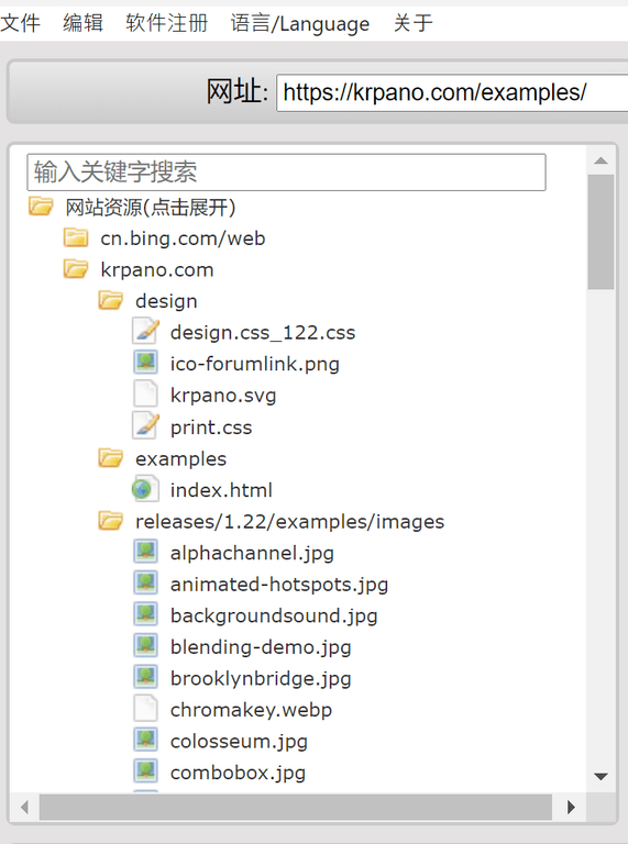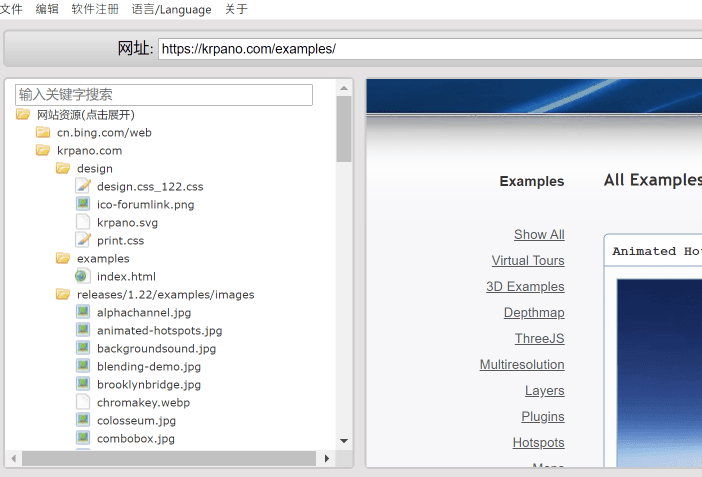 KRPano插件解密大师可以保存下载网站的静态资源, 包括图片, HTML页面, JS文件, CSS样式等所有网站静态资源.
