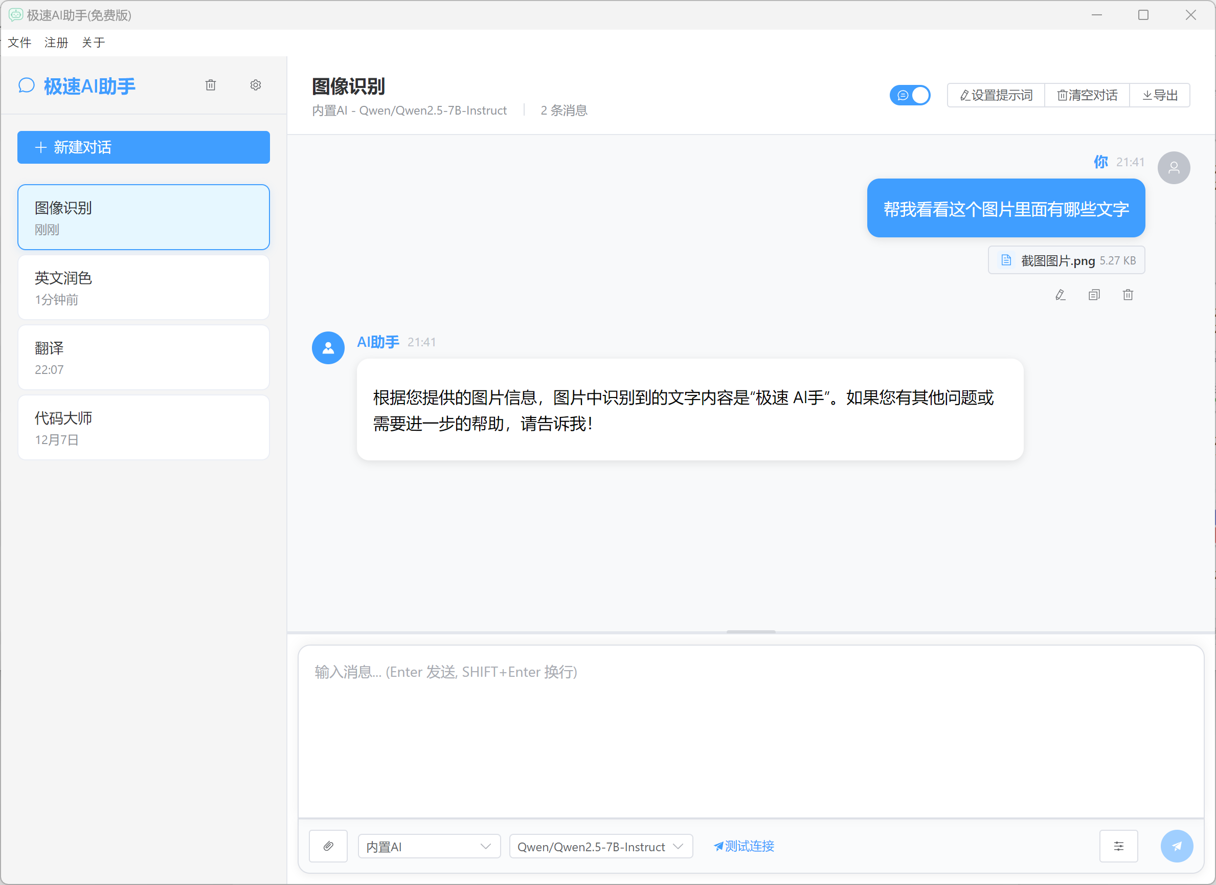 - 内置免费AI服务:方便用户直接体验AI对话功能。