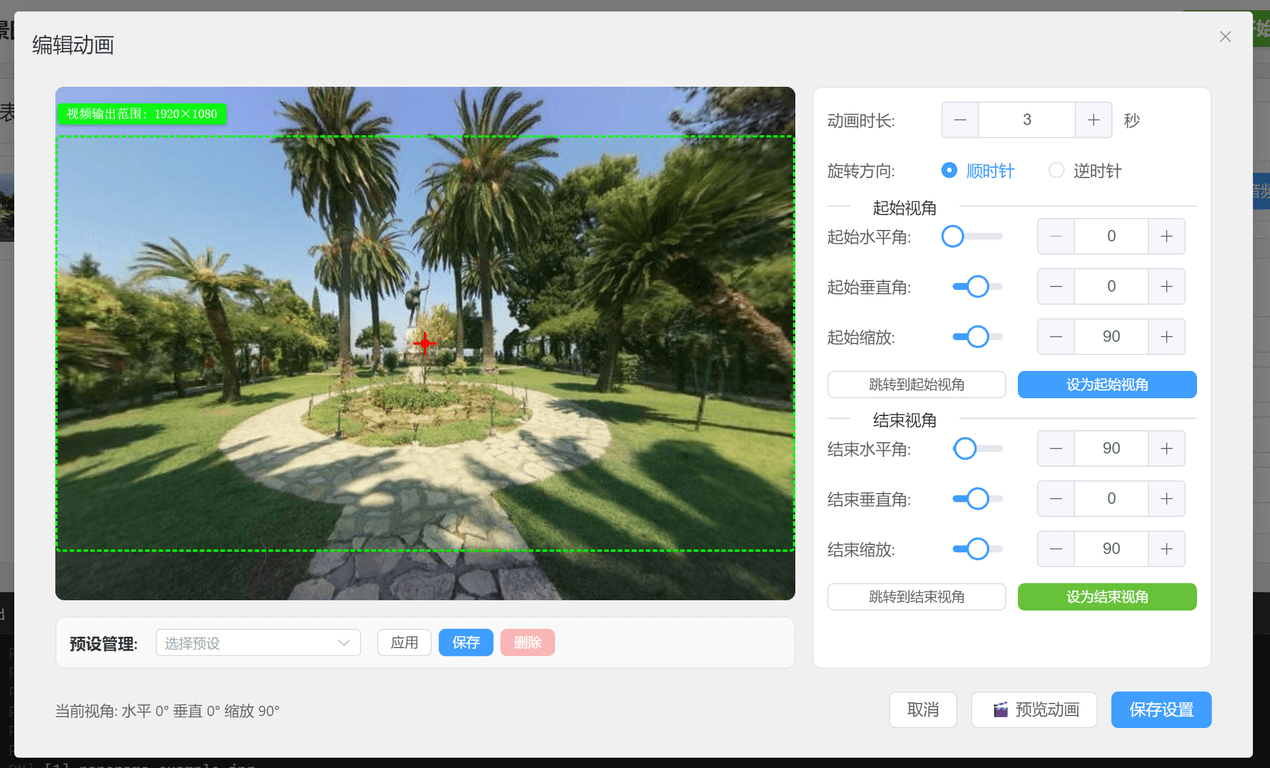 本软件旨在快速将全景图片转换为动态视频作品。其特色在于: